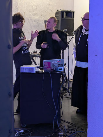 Ein Thinktank für Queerwisdom versammelt sich. Drei Tage lang arbeiten eingeladene Expert*innen der Darstellenden Künste aus Theorie und Praxis zusammen. Sie tauschen sich in Performance, Philosophie und Aktivismus über vergangene, gegenwärtige und zukünftige Bilder von Transness und Nicht-Binarität aus. Die kritische Auseinandersetzung richtet sich unter anderem auf die stigmatisierenden und diskriminierenden Fremdzuschreibungen erstarkender rechter Gruppierungen, die Transness und Nicht-Binarität als Feindbild missbrauchen. Am Samstag, den 25.01.2025 öffnete sich das Labor. Das Publikum war eingeladen, die unterschiedlichen Erfahrungshintergründe mit dem Themenkomplex in einem Künstler*innengespräch zu erweitern.